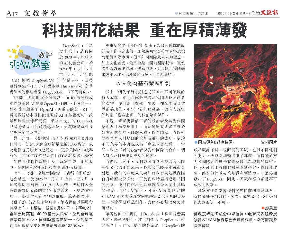 【 STEAM航天教室】學校應具「好奇心」 育富創造力學生