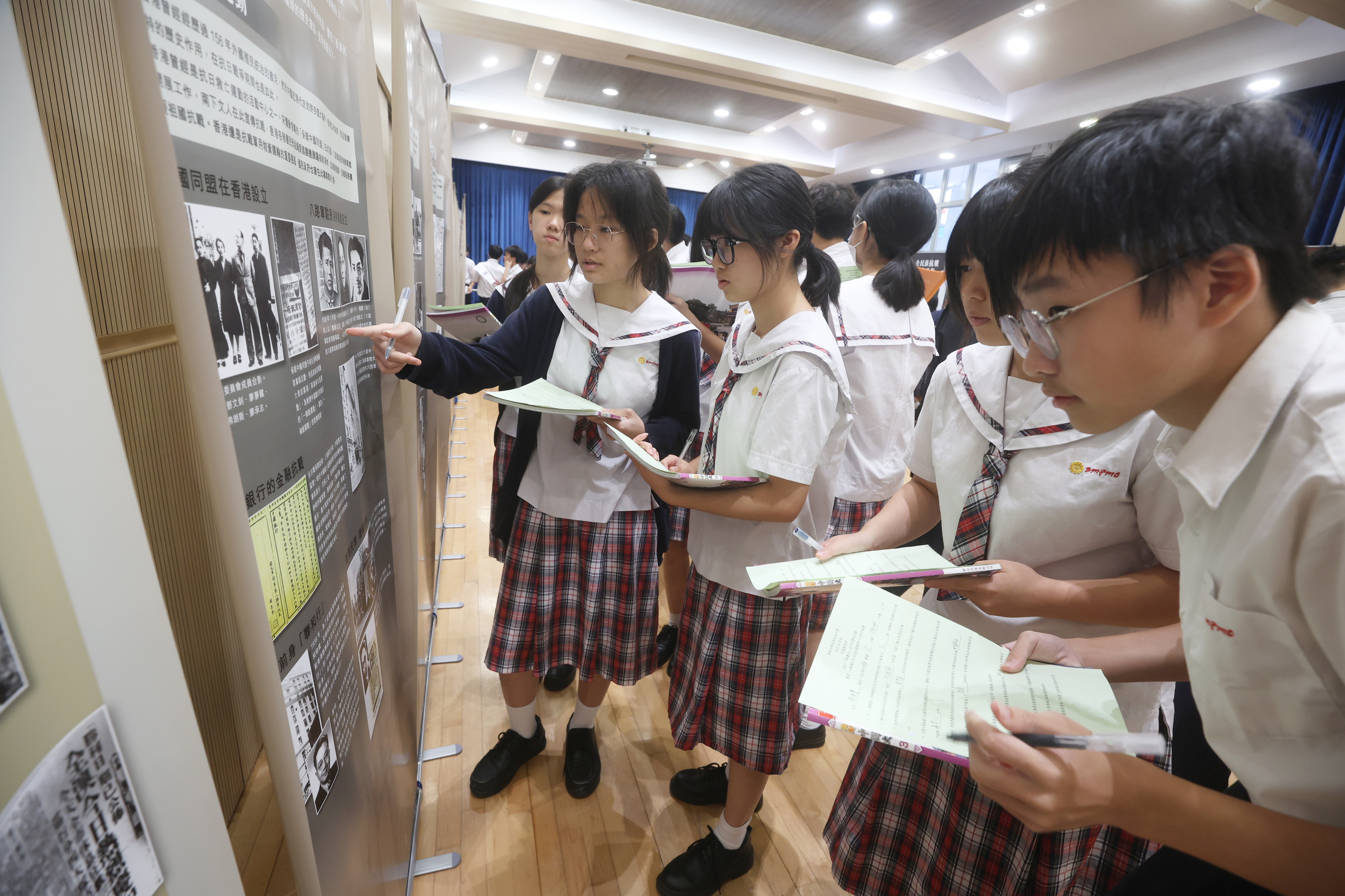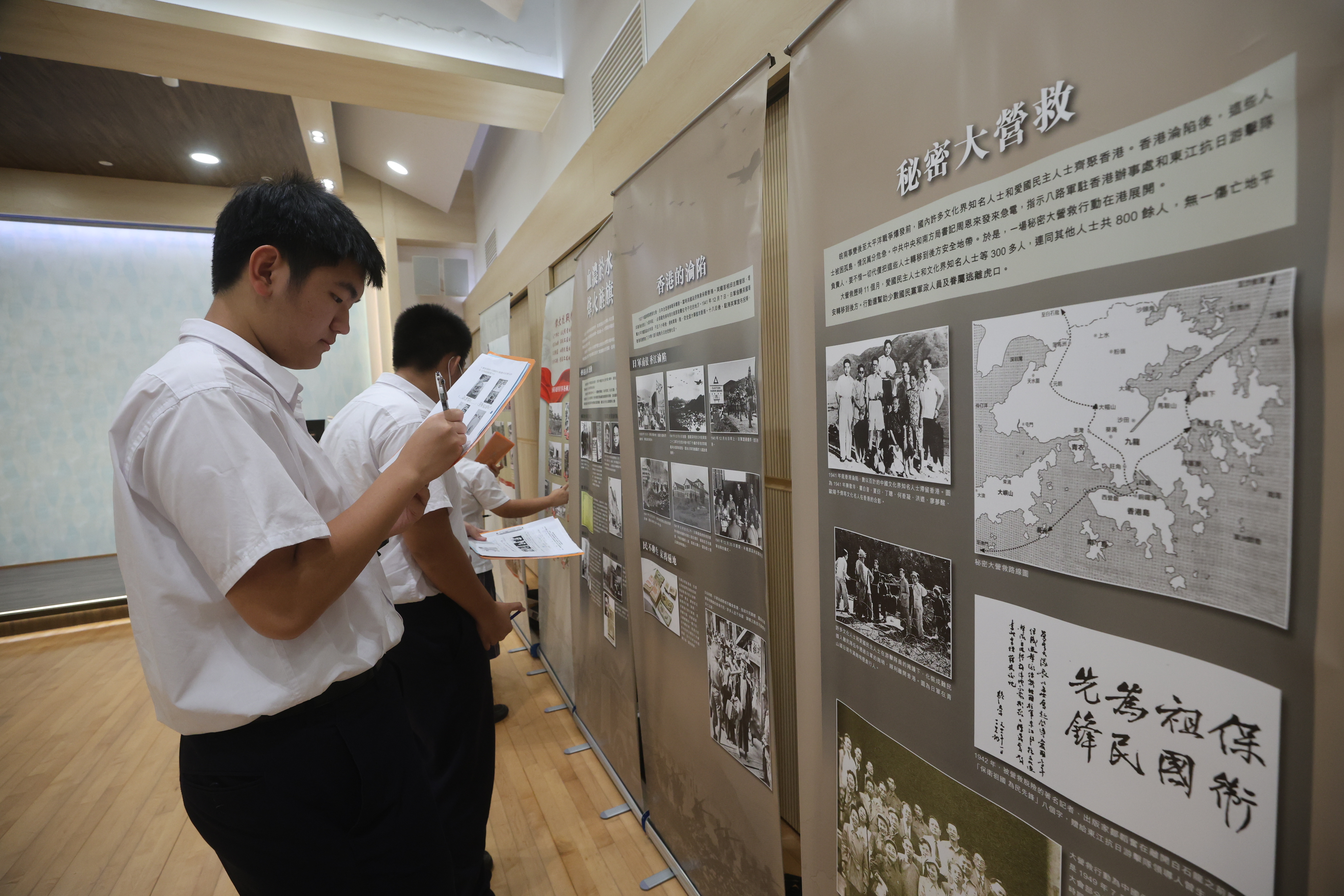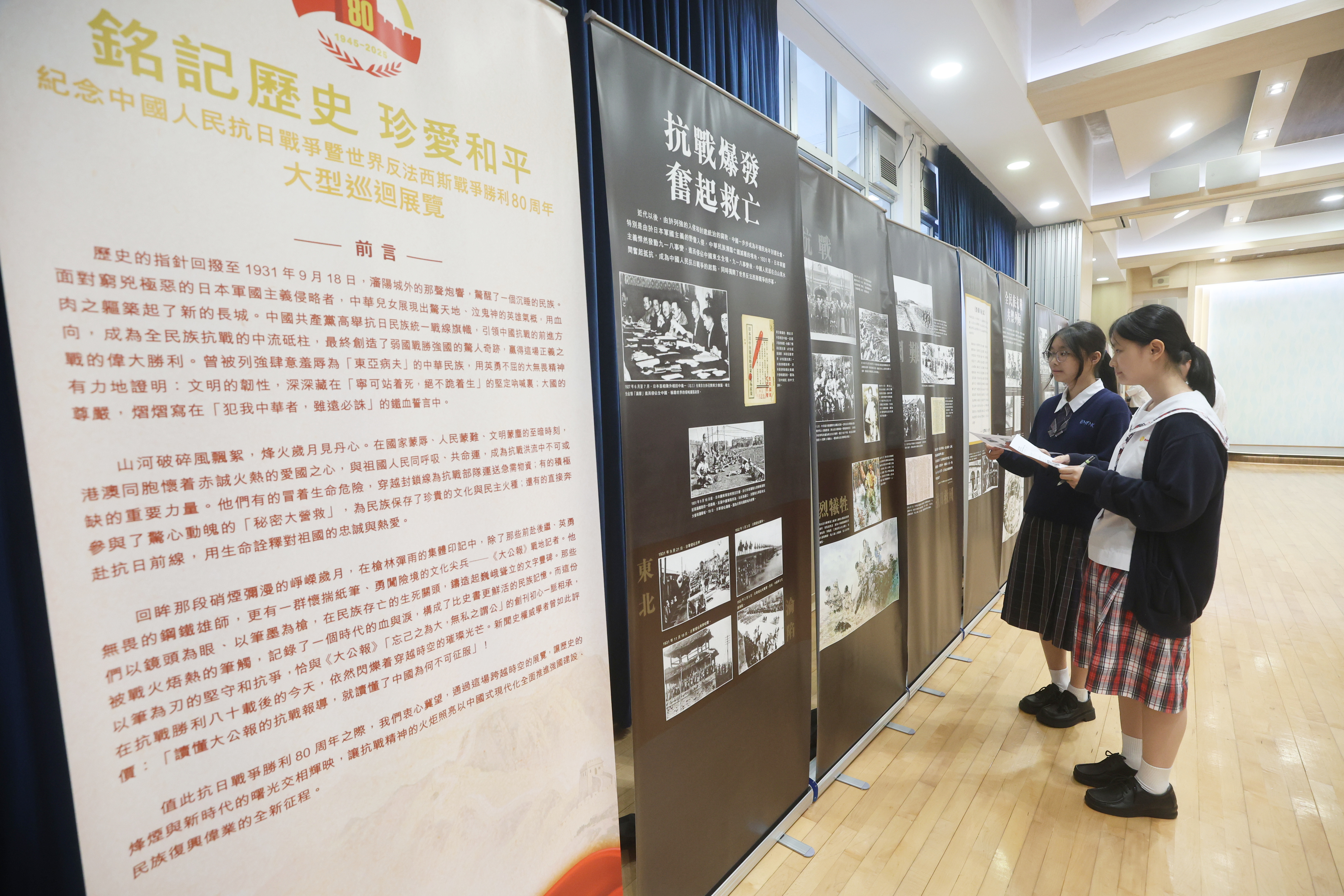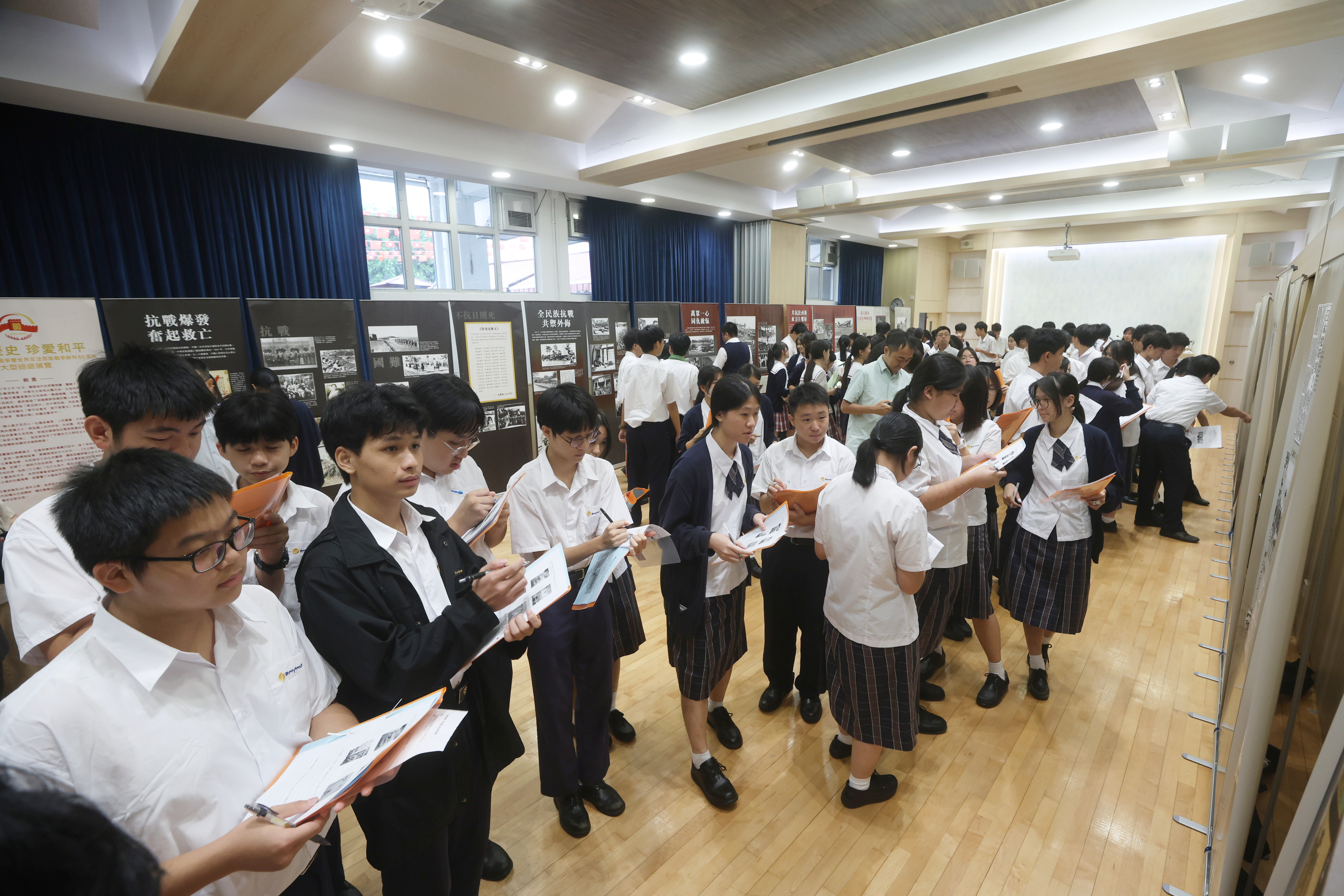 抗戰勝利80周年巡展在佛教茂峰法師紀念中學舉行。(大公文匯全媒體記者郭木又攝)