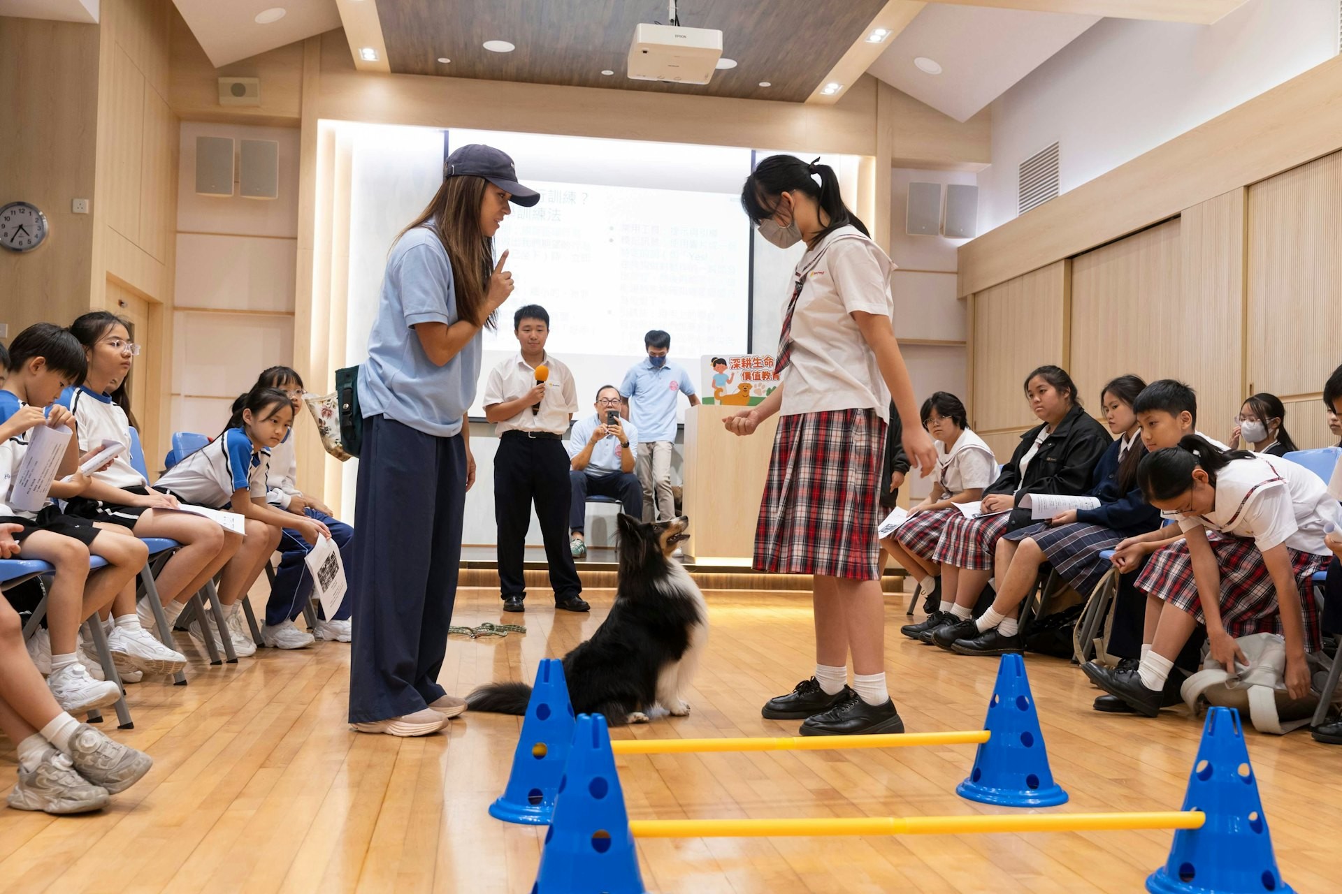 茂峰學生學習訓練犬隻的知識和技能後,與區內小學聯合開辦課程,由茂峰學生擔任小隊長,