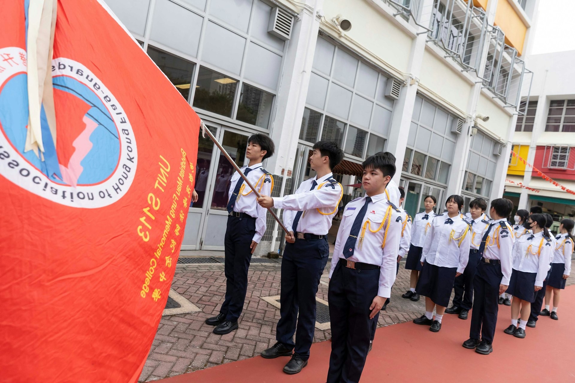 學校現時是香港升旗總會於新界西北的培訓基地,為區內的升旗隊舉行培訓活動。有升旗隊學生表示,透過參與升旗隊,不僅培養了自律與責任感,而且亦讓他們對國家的歷史與發展有更深的認識。更有學生表示,希望將來能成為專業升旗員。