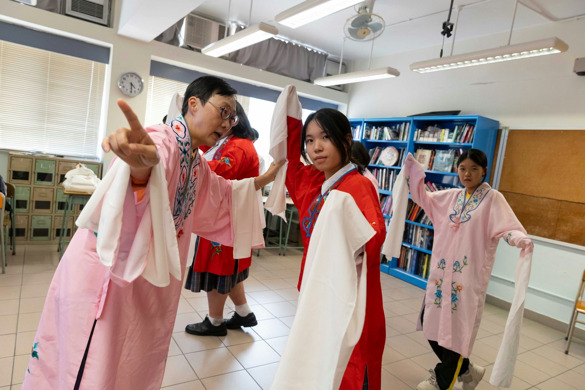 中五學生張玥婷是粵劇團的花旦,三年的學習與演出經歷,讓她愈發自信。她立志傳承及推廣這門傳統藝術。同為中五學生的張聖欣表示,粵劇讓她對中華文化產生了更深切的認同,她感恩學校為粵劇團爭取了豐富的演出機會,指這些經歷讓她大開眼界,自信心也顯著提升,從最初登臺的緊張忐忑,到如今的從容自若。