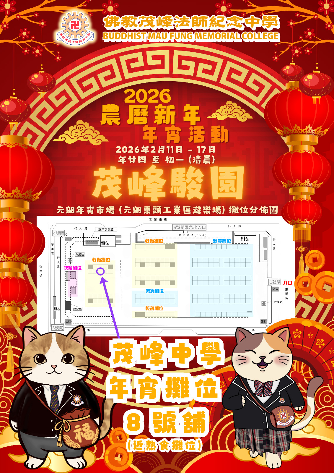 元朗2026年度年宵市場(元朗東頭工業區遊樂場)8號舖。(熟食攤位附近,詳見附件地圖)
