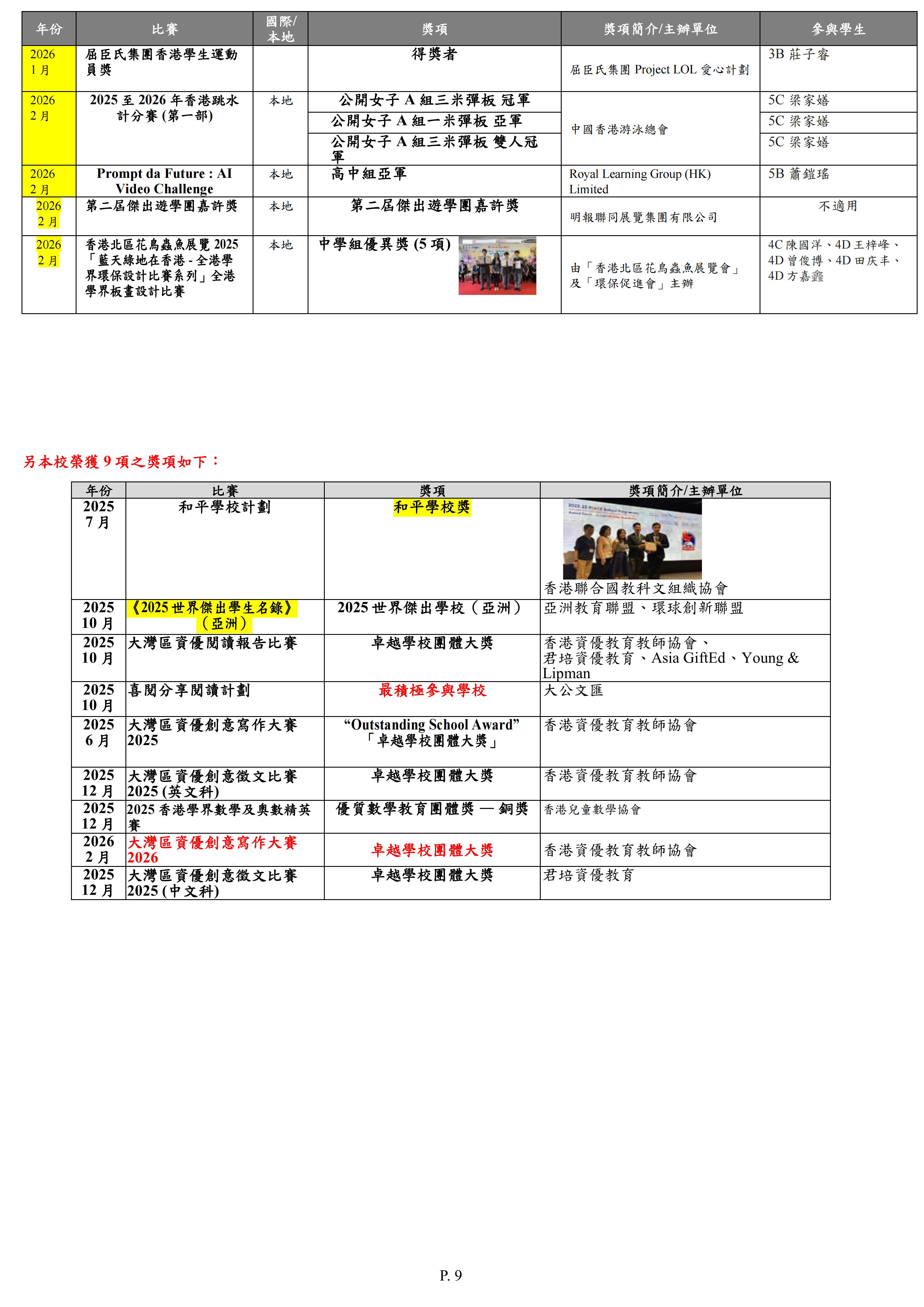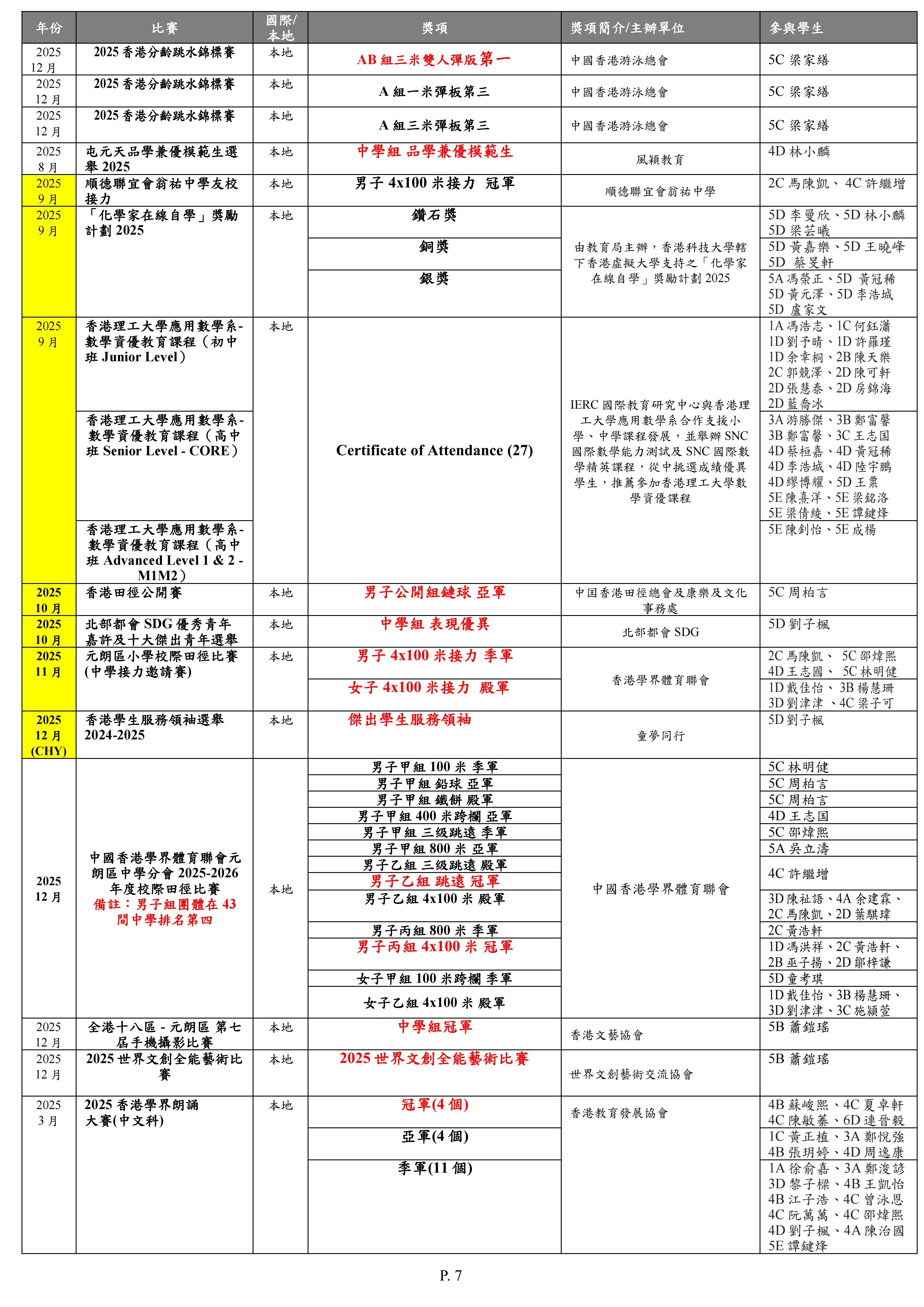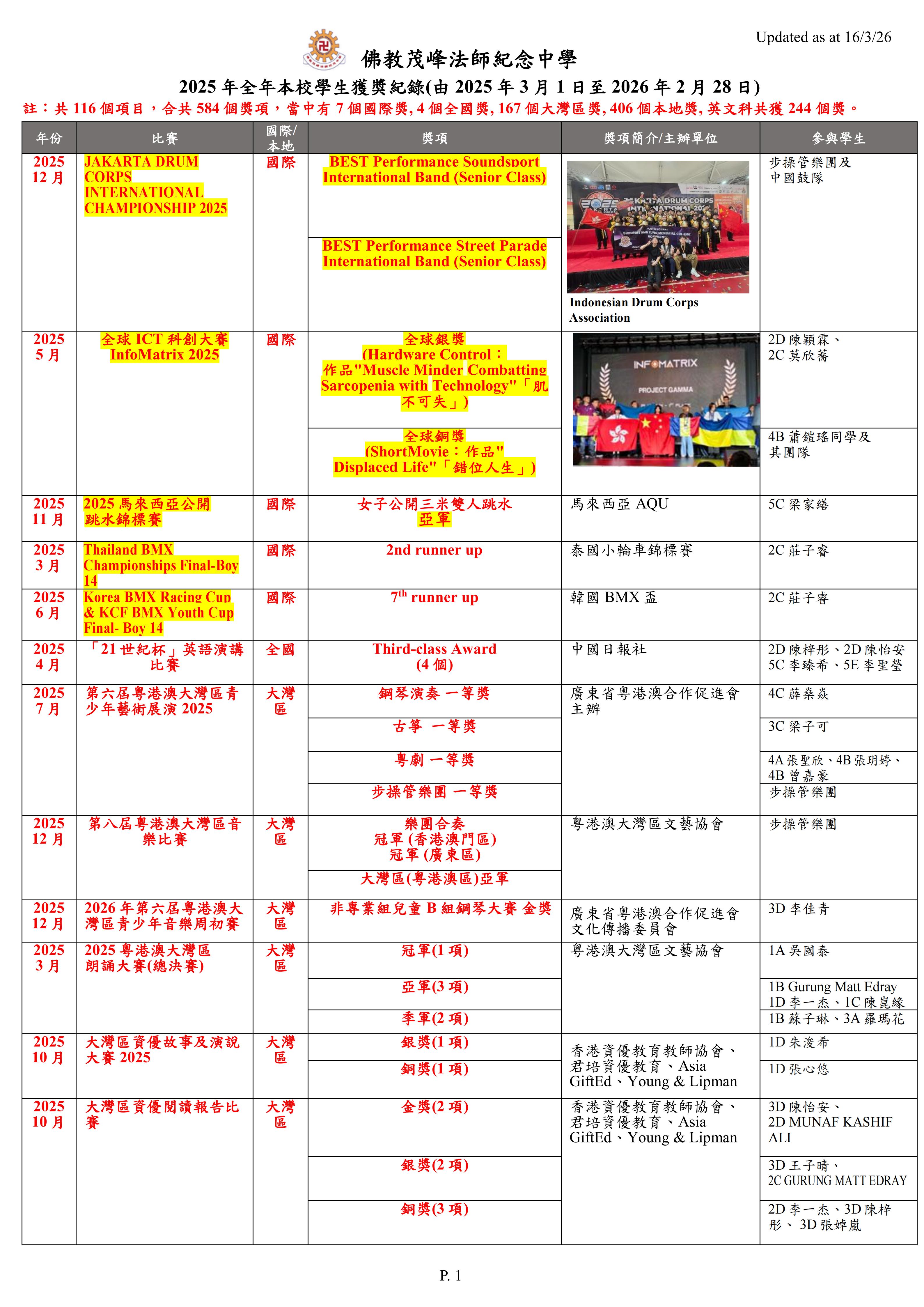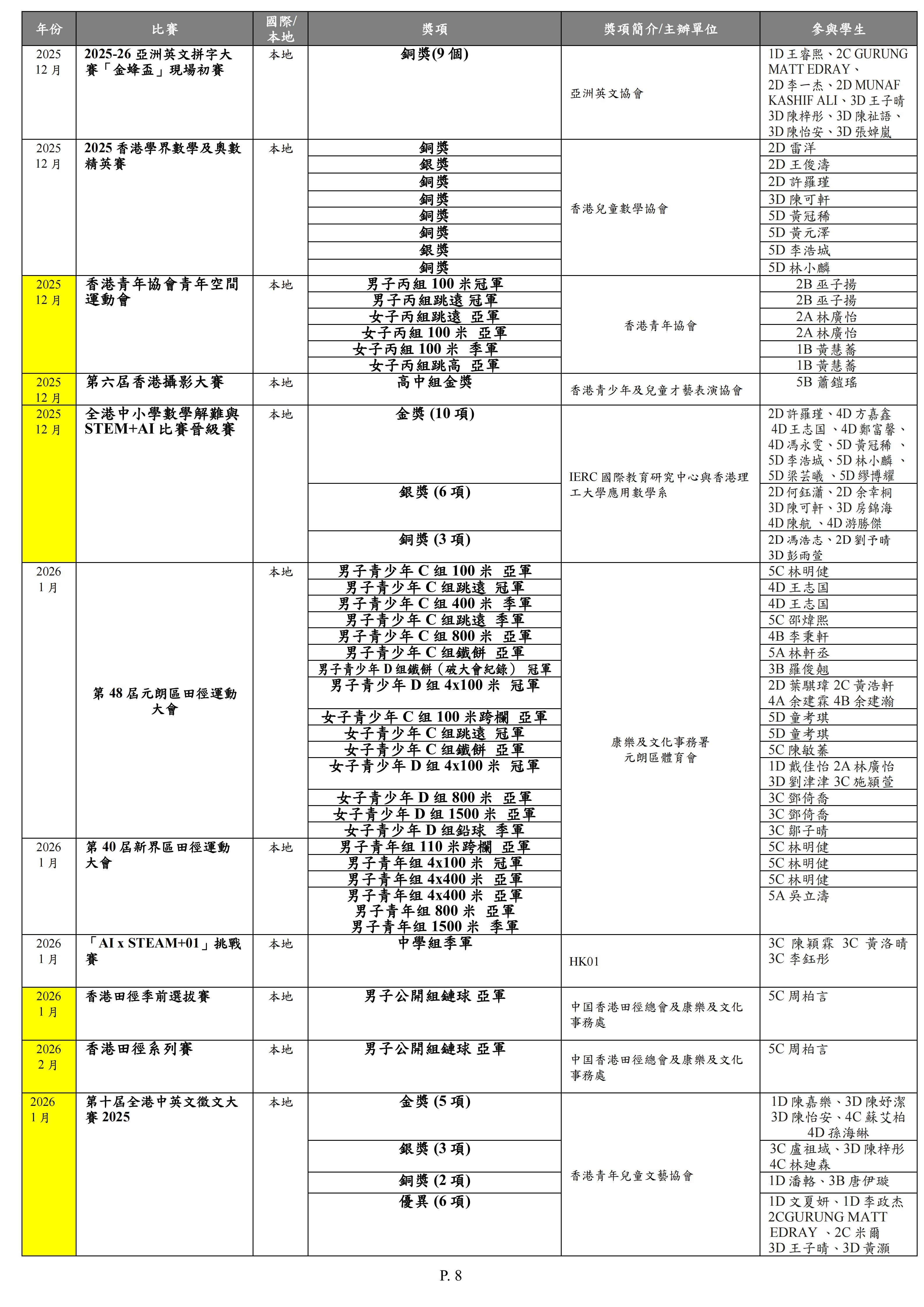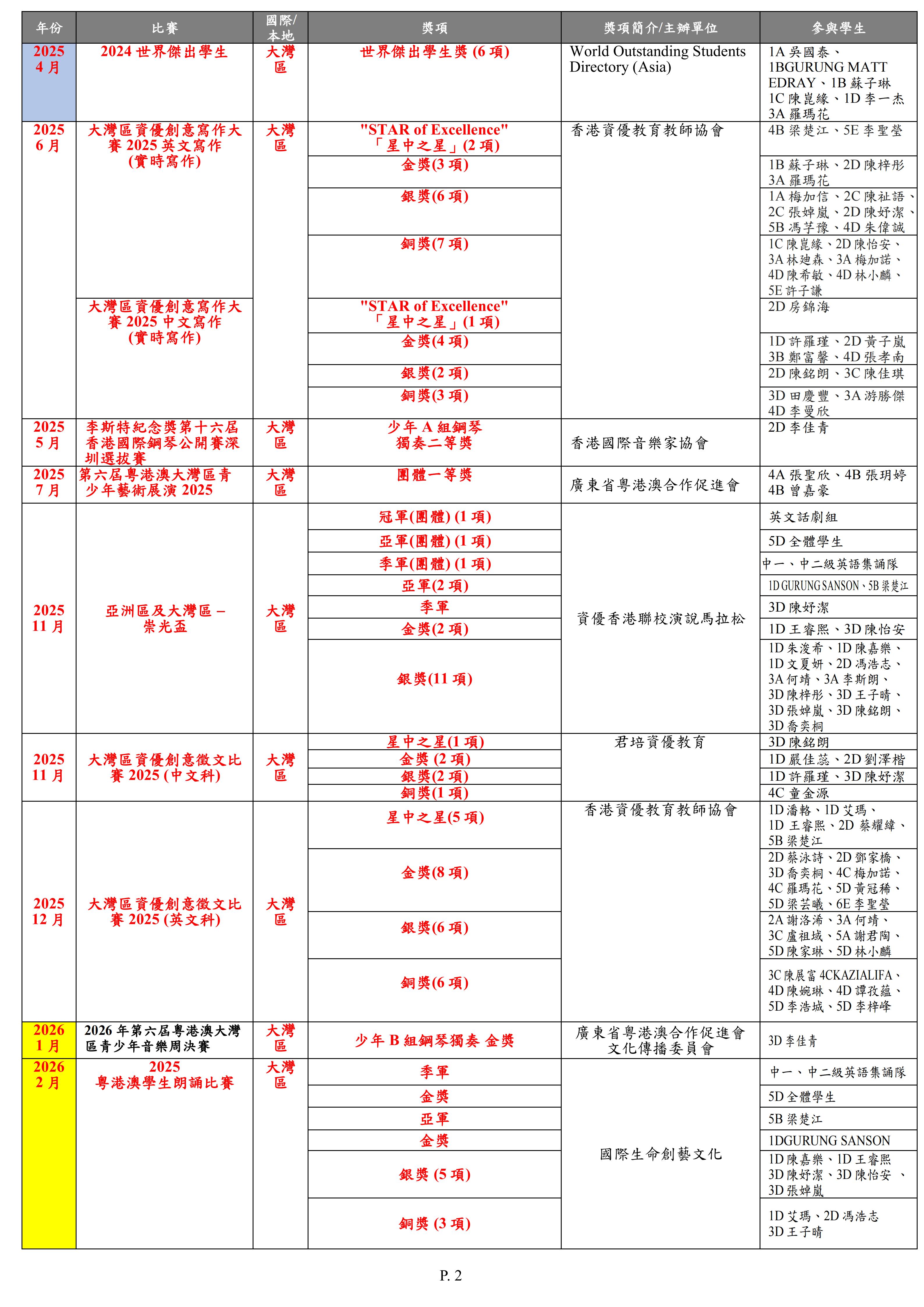 我校同學 由2025年3月1日至2026年2月28日(共12個月) ,共獲超過 558 項 國際、全國、大灣區及全港獎項 (不包括優異獎) ,展現學生卓越才華,老師悉心栽培,讓同學在不同領域盡長所才,發光發亮!