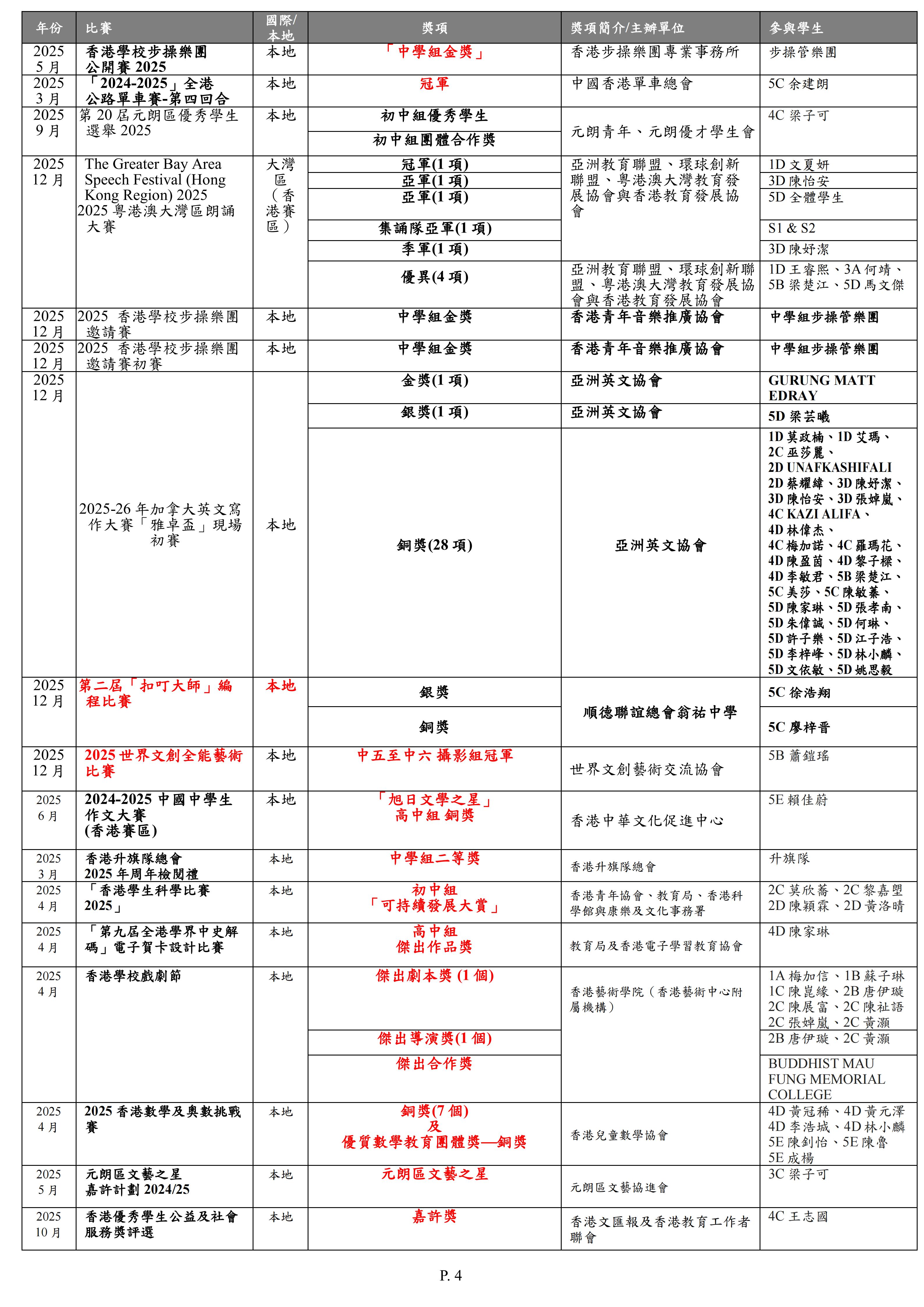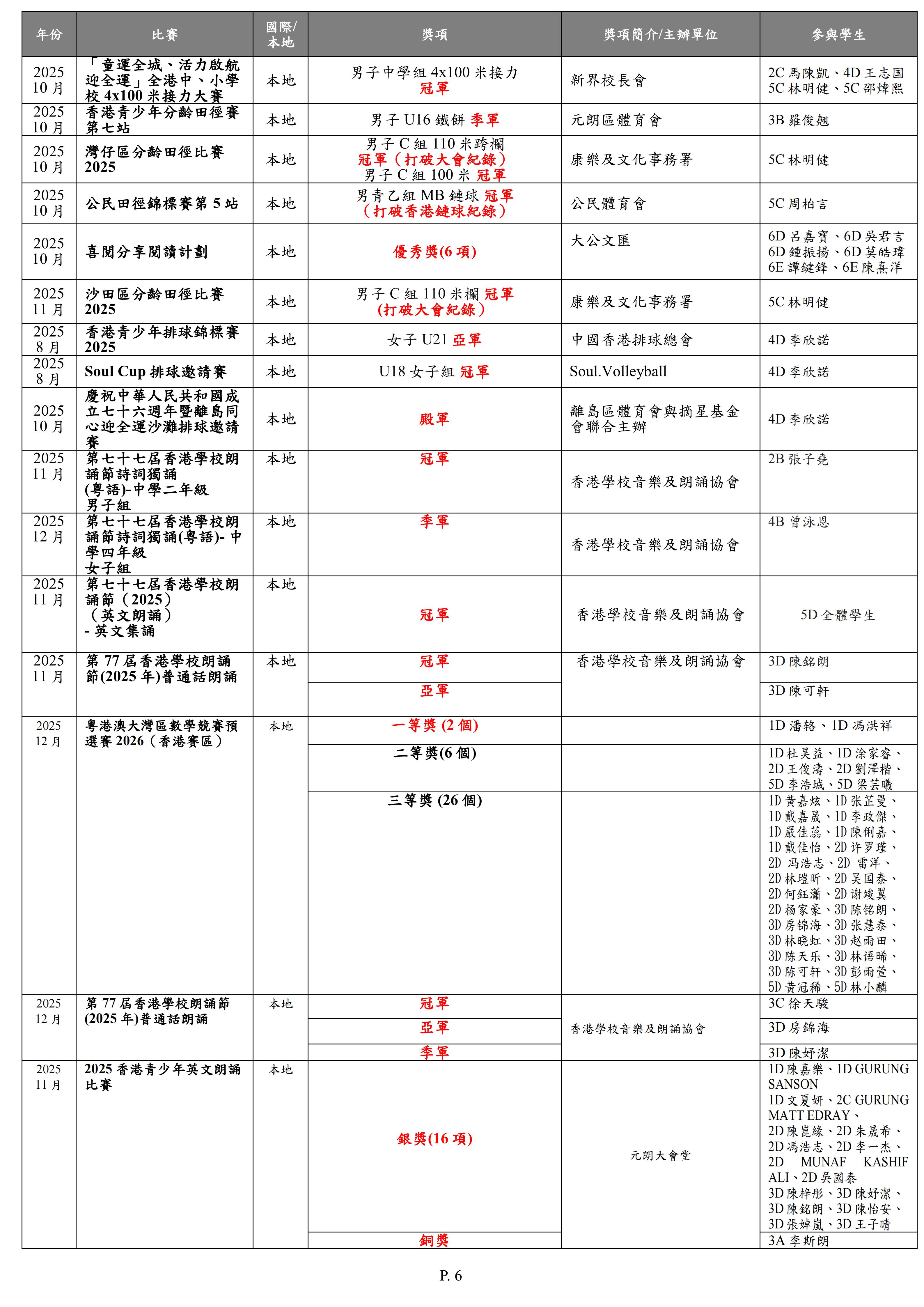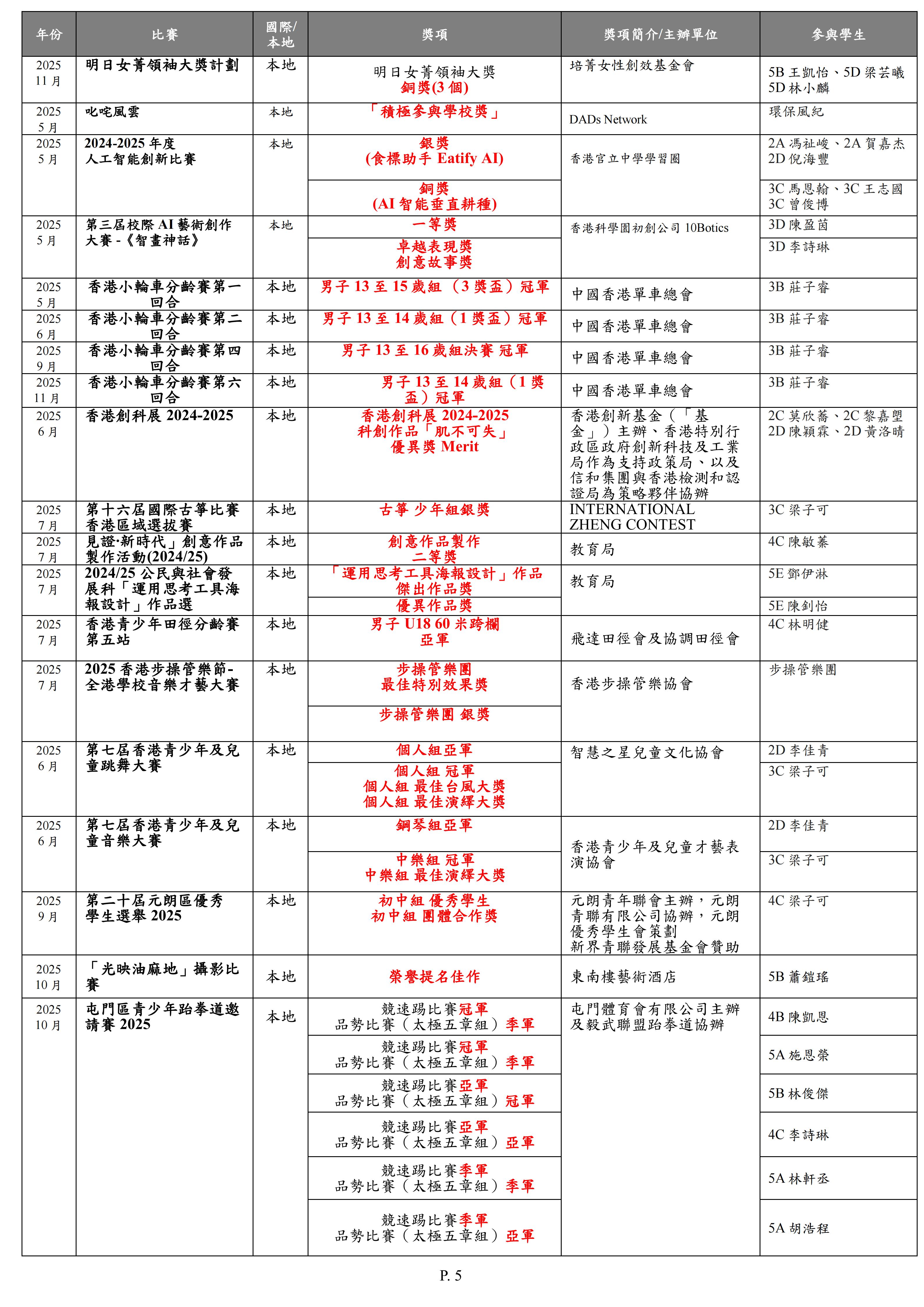 最新數據:我校同學 由2025年1月1 日至2025年12月31日 ,共獲超過 367 項 國際、全國、大灣區及全港獎項 ,展現學生卓越才華,老師悉心栽培,讓同學在不同領域盡長所才,發光發亮!
