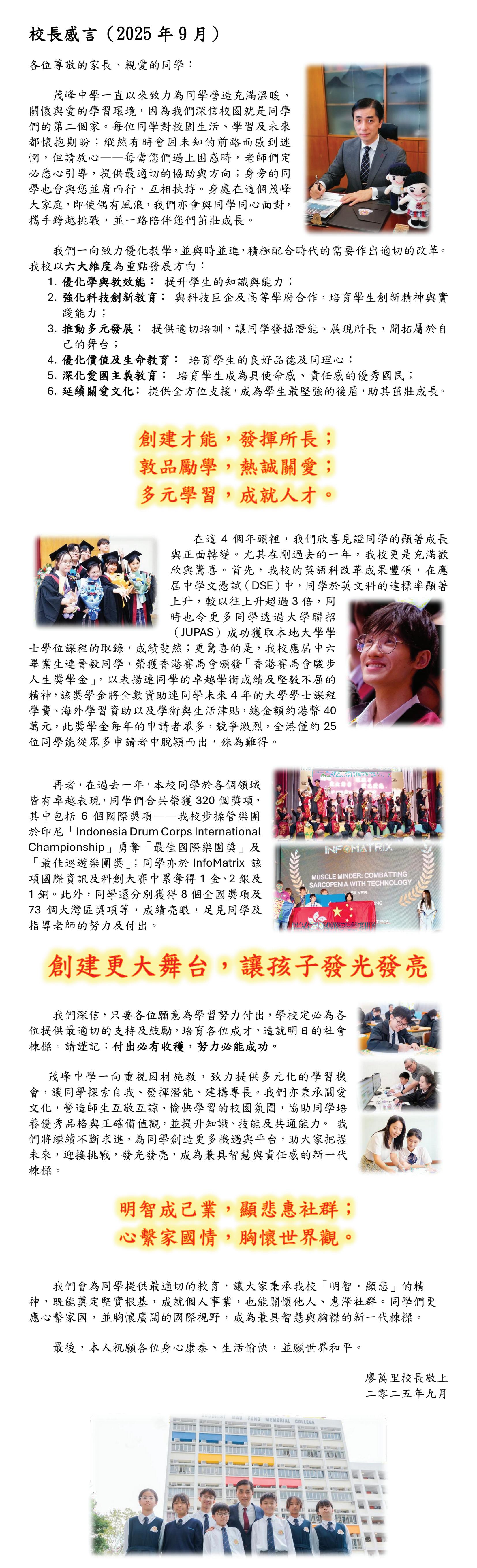 二零二五年九月 校長感言