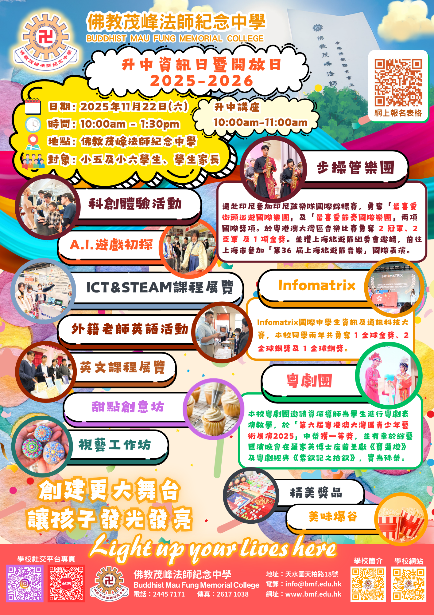 🌟佛教茂峰法師紀念中學 升中資訊日暨開放日🌟