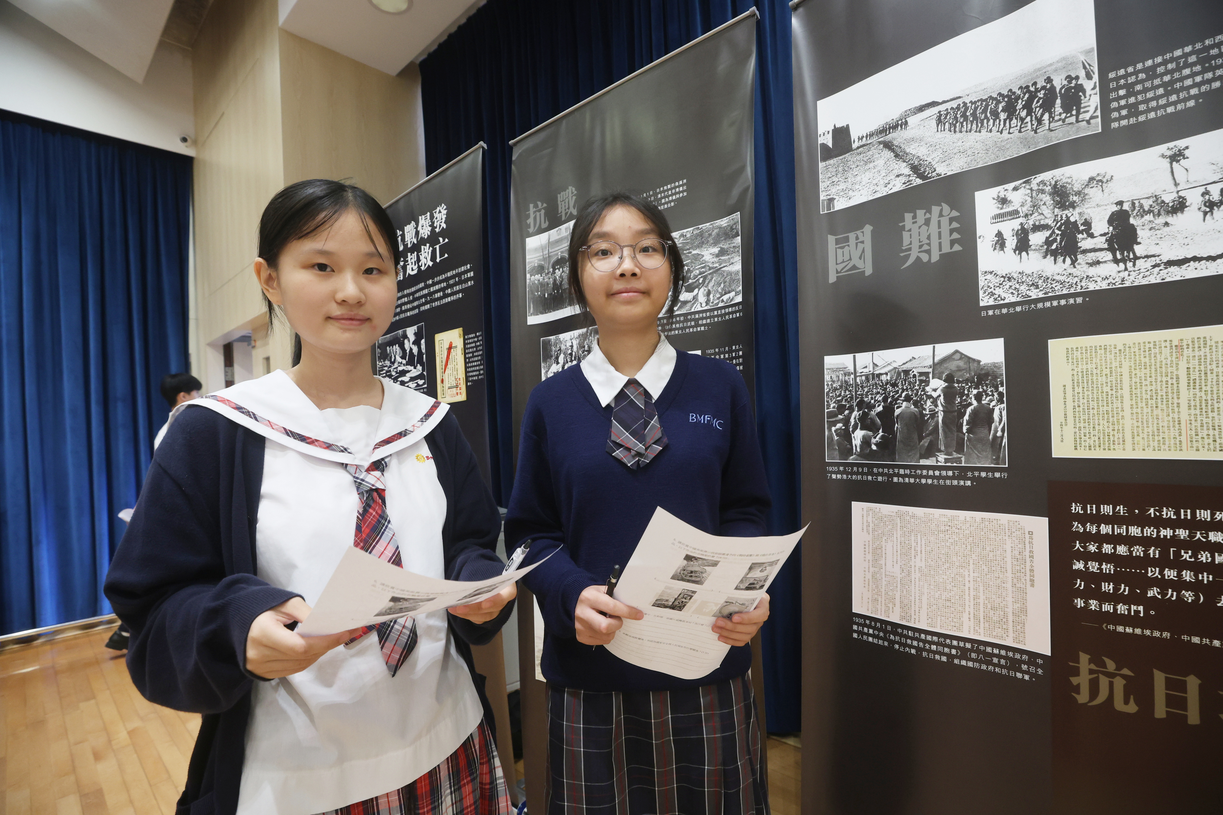參與巡展第一站的是佛教茂峰法師紀念中學,今日(13日)上午校內有不少學生前往觀看,其中參觀學生之一,中五級學生何琳表示,展覽增加了她對抗戰歷史的新認識,「之前在歷史課本中學過『全民抗戰』,但課本並沒有具體說明有哪些人參與。在這次展覽中則提到了工人、海外華僑等。」她指,看到海外華僑即使身在海外,也會寄送物資回國,援助中國抗日,讓她深刻體會到中華兒女團結一心,共同奮戰的精神。