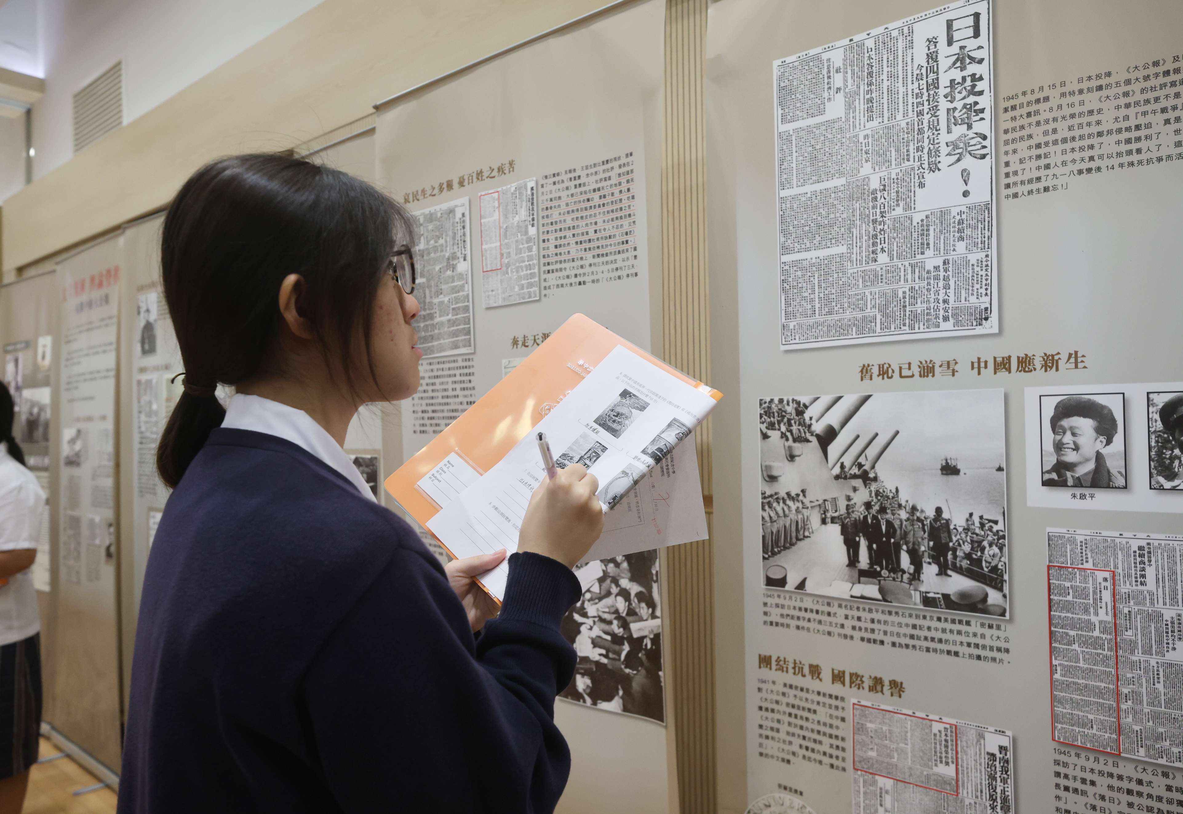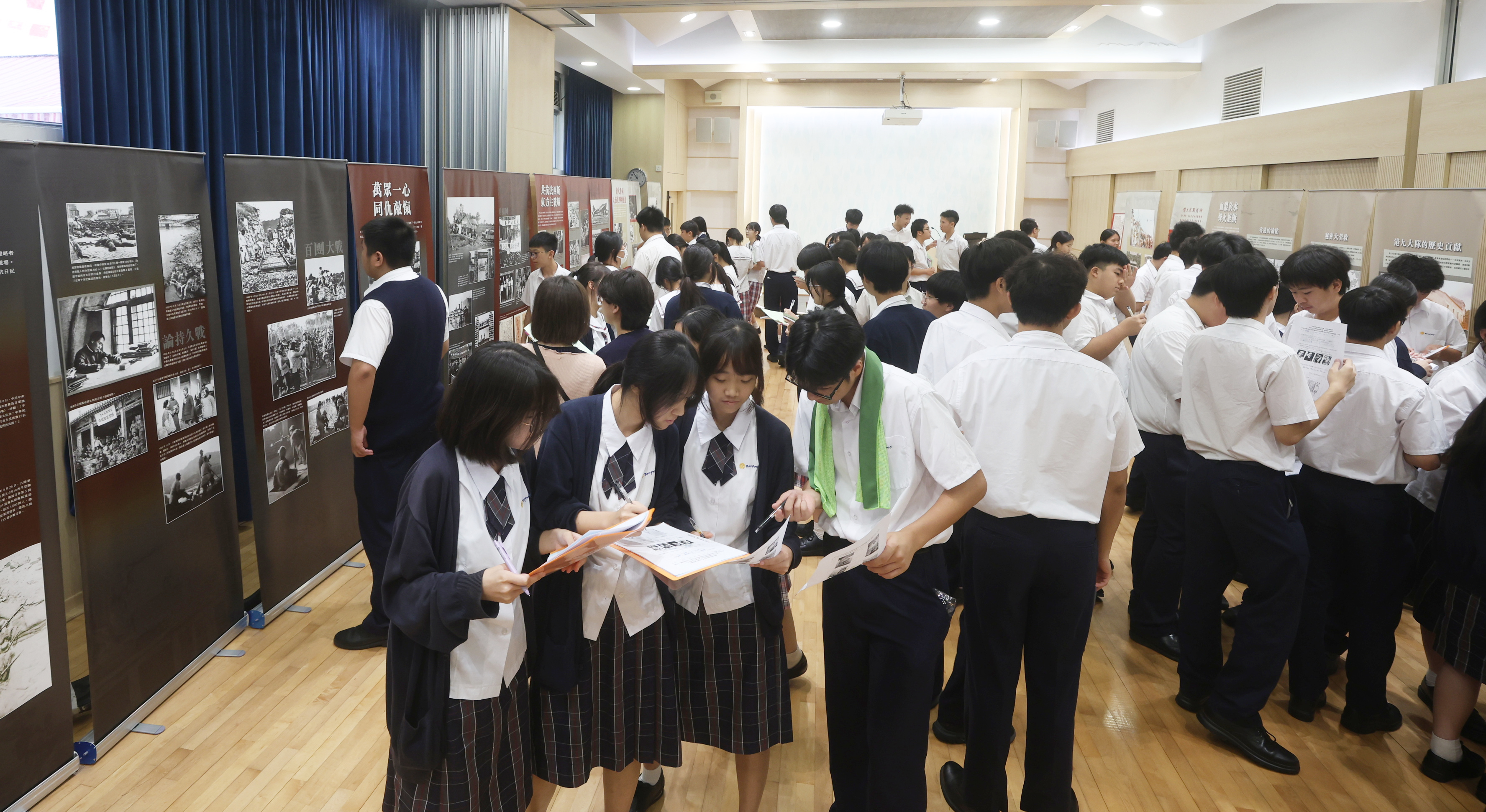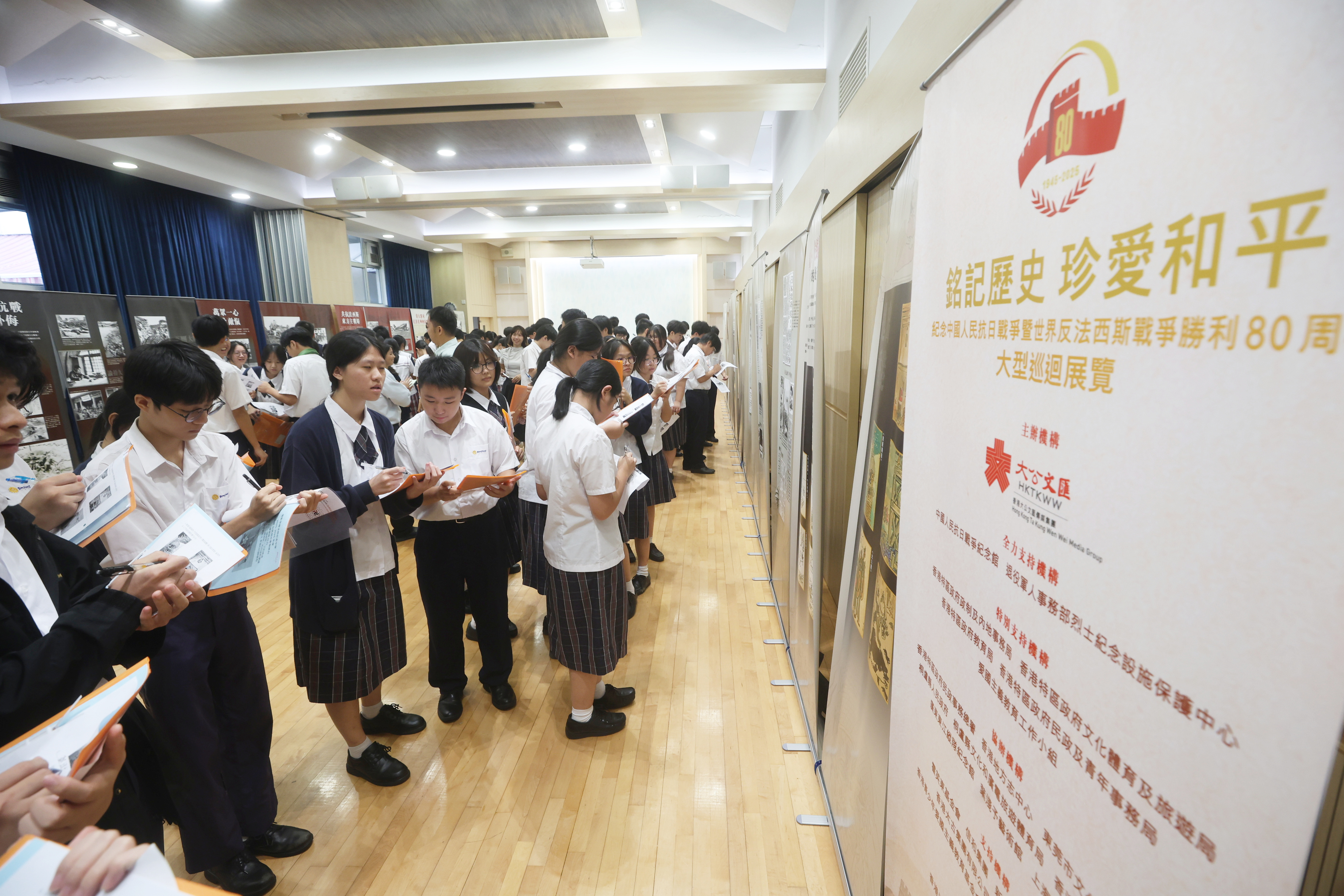 抗戰勝利80周年巡展在佛教茂峰法師紀念中學舉行。(大公文匯全媒體記者郭木又攝)