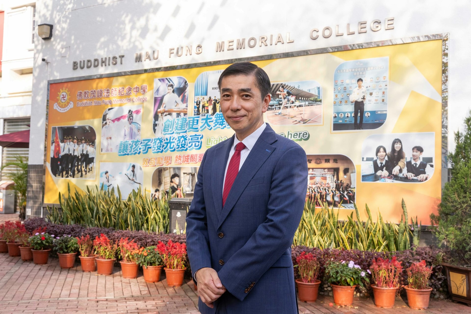 佛教茂峰法師紀念中學校長廖萬里,致力為學生搭建階梯,讓他們突破成長框架,創建更大舞台,站得更高,看得愈遠。(陳葦慈攝)